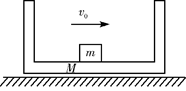 5、选择题 (5分)、如下图所示,质量为M的盒子放在光滑的水平面上,盒子内表面不光滑,盒内放有一块质量为m的物体.从某一时刻起给m一个水平向右的初速度v0,那么在物块与盒子前后壁多次往复碰撞后(?)