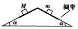 1、选择题 如图所示,倾角为α的等腰三角形斜面固定在水平面上,一足够长的轻质绸带跨过斜面的顶端铺放在斜面的两侧,绸带与斜面间无摩擦,现将质量分别为M、m(M>m)的小物块同时轻放在斜面两侧的绸带上,两物块与绸带间的动摩擦因数相等,且最大静摩擦力与滑动摩擦力大小相等。在α角取不同值的情况下,下列说法正确的有