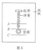 2、选择题 图6所示为一个研究性学习小组设计的一种竖直速度器,他们先将轻弹簧上端用胶带固定在一块表面竖直的纸板上,让其自然下垂