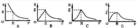 4、选择题 假设地球是一半径为R,质量分布均匀的球体。已知质量分布均匀的球壳对壳内物体引力为零,地球表面处引力加速度为g。则关于地球引力加速度a随地球球心到某点距离r的变化图像正确的是(?)