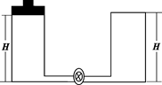 2、计算题  (9分)如图所示,两个截面积均为S的圆柱形容器,左右两边容器高均为,右边容器上端封闭,左边容器上端是一个可以在容器内无摩擦滑动的轻活塞(重力不计),两容器由装有阀门的极细管道(体积忽略不计)相连通。开始时阀门关闭,左边容器中装有热力学温度为的理想气体,平衡时活塞到容器底的距离为,右边容器内为真空。现将阀门缓慢打开,活塞便缓慢下降,直至系统达到平衡,此时被封闭气体的热力学温度为T,且。求此过程中外界对气体所做的功。(已知大气压强为P0)