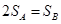 5、计算题 如图所示,在固定的气缸A和B中分别用活塞封闭一定质量的理想气体,活塞面积之比为SA:SB =? 1:2.两活塞以穿过B的底部的刚性细杆相连,可沿水平方向无摩擦滑动.两个气缸都不漏气.初始时,A、B中气体的体积皆为V0,温度皆为T0=300K.A中气体压强pA=1.5p0,p0是气缸外的大气压强.现对A加热,使其中气体的压强升到 ,同时保持B中气体的温度不变.求此时A中气体温度TA .