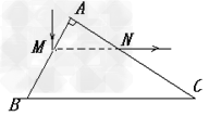 1、计算题 如图所示,为某种材料制成的三棱镜截面ABC,底边BC水平且镀银,其中,∠A=90°,∠B=60°。一束竖直向下的光束,从AB边上的M点入射,经过BC面反射后,从AC边上的N点平行于BC边射出,且MN连线与BC平行。求: