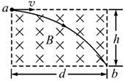 2、选择题 如图所示,一电子从a点以速度v垂直进入长为d、宽为h的矩形磁场区域沿曲线ab运动,且通过b点离开磁场。已知电子的质量为m,电量为e,磁场的磁感应强度为B,ab的弧长为s,不计重力,则该电子在磁场中运动的时间为? (? )