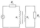 5、选择题 如图所示,一理想变压器的原副线圈匝数比为5∶1,正弦交流电源的内阻不计,电阻R1=R2="4" Ω,R2消耗的功率为P2="100" W,则(?)