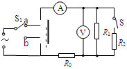 D.断开开关S,开关S1接a时原线圈输入功率为P1,开关S1接b时原线圈输入功率为P2,则P1<P2