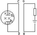 3、选择题 如图所示,连接平行金属板P1和P2(板面垂直于纸面)的导线的一部分CD和另一连接电池的回路的一部分GH平行,CD和GH均在纸面内,金属板置于磁场中,磁场方向垂直纸面向里.当一束等离子体射入两金属板之间时,CD段导线将受到力的作用( )