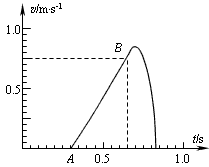 5、实验题 图中所示是用DIS实验得出的、从斜面顶端下滑的一辆小车的v-t图像。由图可知,小车在AB段的运动可以近似看作是____________运动,小车在AB段的加速度为____________m/s2,小车在AB段的位移为____________m。