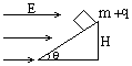 ,动摩擦因数为μ的斜面顶端,有一质量为m,电荷量为+q的滑块由静止自斜面顶点滑下,空间有匀强电场E,方向水平向右,求:(1)过程加速度?(2)滑块到斜面底时的速度?
