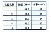 (2)该实验小组想利用实验所测得的数据测出压强传感器和注射器的连接管的容积,所测得的压强和注射器的容积(不包括连接管的容积)数据如下表所示: