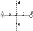 2、选择题  如图,A、B为两等量异号点电荷,dbe为中垂线,ab=bc,则(  )