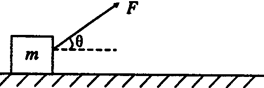3、计算题 (8分)如图所示,质量m=6kg的物块静止在水平桌面上,受到与水平方向成θ=37°角的作用力F。(sin37°=0.6 cos37°=0.8 g=10m/s2)