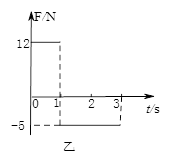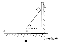”形木块放在光滑水平地面上,木块水平表面AB粗糙,光滑表面BC与水平面夹角为θ=37°。木块右侧与竖直墙壁之间连接着一个力传感器,当力传感器受压时,其示数为正值;当力传感器被拉时,其示数为负值。一个可视为质点的滑块从C点由静止开始下滑,运动过程中,传感器记录到的力和时间的关系如图乙所示。已知sin37°=0.6,cos37°=0.8,g取10m/s2,求: