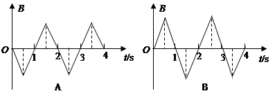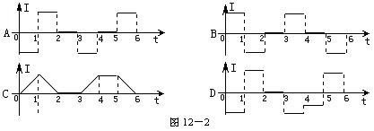 3、选择题 一矩形线圈位于一随时间t变化的匀强磁场内,磁场方向垂直线圈所在的平面(纸面)向里,如图12-1所示.磁感应强度B随时间t变化的规律如图12-1所示.以I表示线圈中的感应电流,以图12-1中线圈上箭头所示方向的电流为正,则以下的I-t图12-2中正确的是
