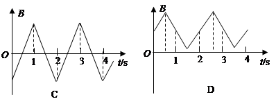 本题解析:在0—0.5s,电流为负值,可推得磁感强度向内的增加或向外的减少,即磁感强度值正值越来越大或负值越来越小,因此A错误;在0.5—1.5s内,电流为正值,在这段时间内,磁感强度向内的减少或向外的增加,当然也可以先是向内的减少,然后是向外的增加,因此C选项错误,在01.5s—2s,电流为负值,可知磁感强度向内的增加或向外的减少,在以后的变化过程中,磁场都做周期性的变化,因此BD都正确