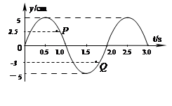 本题解析:本题图为振动图象,振动周期为2s,振幅5cm,P点正回到平衡位置,因此向y轴负方向振动,Q点正回到平衡位置,加速度指向平衡位置即竖直向上,从坐标上来看,从P到Q的路程正好为9.5cm,答案为BC