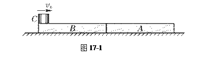1、简答题 如图17-1所示,A、B是静止在水平地面上完全相同的两块长木板.A的左端和B的右端相接触.两板的质量皆为M=2.0kg,