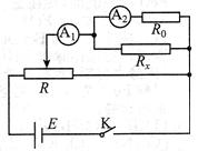 (3)测量中某块电流表的读数为40 mA,若用到另一块电流表其读数为25mA,若用到电压表其读数为3V,则金属丝的阻值Rx=____________________。
