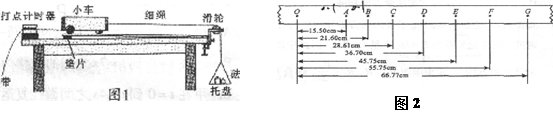 ②连接细绳及托盘,放人砝码,通过实验得到图2所示的纸带。纸带上0为小车运动起始时刻所打的点,选取时间间隔为0. 1s的相邻计数点ABC、D、EFG。实验时小车所受拉力为0. 2N,小车的质量为0.2kg。