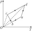 4、填空题 一定质量的理想气体经历如图8-3-10所示的一系列过程,ab、bc、cd和da这四个过程中在p-T图上都是直线段,其中ab的延长线通过坐标原点O,bc垂直于ab而cd平行于ab,由图可以判断(?)