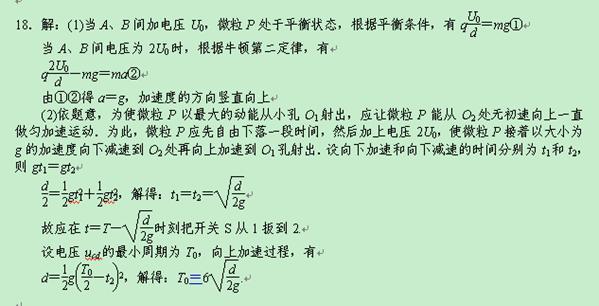 (2)若要使微粒P以最大的动能从A板中的O1小孔射出,问在t=到t=T之间的哪个时刻,把开关S从1扳到2,ucd的周期T至少为多少?