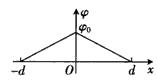 3、计算题 静电场方向平行于x轴,其电势φ随x的分布可简化为如图所示的折线,图中φ0和d为已知量,一个带负电的粒子在电场中以x=0为中心、沿x轴方向做周期性运动。已知该粒子质量为m、电荷量为-q,其动能与电 势能之和为-A(0<A<qφ0)。忽略重力,求: