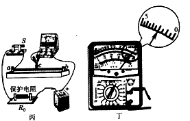 4、实验题  如图丙所示的电路,金属丝固定在两接线柱a、b上,锷鱼夹c与金属丝接触良好,现用多用表测量保护电阻R0的阻值,请完成相关的内容: