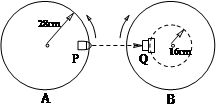 5、选择题 某机器内有两个围绕各自固定轴匀速转动的铝盘A、B,A盘上固定一个信号发射装置P,能持续沿半径向外发射红外线,P到圆心的距离为28cm。B盘上固定一个带窗口的红外线信号接收装置Q,Q到圆心的距离为16cm。P、Q转动的线速度均为4π m/s。当P、Q正对时,P发出的红外线恰好进入Q的接收窗口,如图所示,则Q每隔一定时间就能接收到红外线信号,这个时间的最小值为(?)