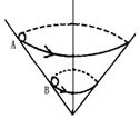 4、选择题 如图所示,倒置的光滑圆锥面内侧,有质量相同的两个小玻璃球A、B,沿锥面在水平面内作匀速圆周运动,关于A、B两球的角速度、线速度和向心加速度正确的说法是? (? )