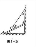 2、简答题 重(N)的由轻绳悬挂于墙上的小球,搁在轻质斜板上,斜板搁于墙角。不计一切摩擦,球和板静止于图1-14所示位置时,图中