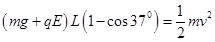2、计算题 一根长为L的丝线吊着一质量为m的带电量为q的小球静止在水平向右的匀强电场中,如图所示,丝线与竖直方向成37o角,现突然将该电场方向变为向下且大小不变,不考虑因电场的改变而带来的其他影响,重力加速度为g,sin370=0.6,cos370=0.8,求: