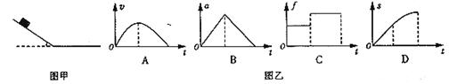 4、选择题  如图甲所示,物体沿斜面由静止滑下,在水平面上滑行一段距离后停止,物体与斜面和水平面间的动摩擦因数相同,斜面与水平面平滑连接。图乙中 、a、