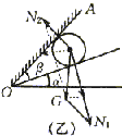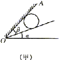 3、计算题 如图(甲)所示.质量为m的球放在倾角为α的光滑斜面上,试分析挡板AO与斜面间的倾角β为多大时,AO所受压力最小?