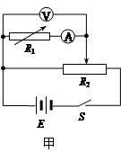 (2)某实验小组用如图甲的电路测量一直流安培表的内电阻。所给的器材有: 电池E(约4.5V);电流表A(量程0~300mA,待测内阻约为5Ω);电压表V(量程0~3V);电阻箱R1;滑动变阻器R2(0~10Ω),以及电键S和导线若干。