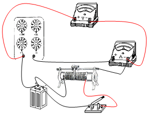 B、闭合电键,调节__________________________,使通过安培表电路电流从小到大变化,读出并记录数据。