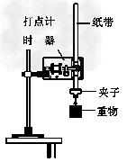 ④将纸带固定在重物上,让纸带穿过打点计时器,用手提着纸带使重物静止;