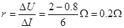 点评:本题中C项的结果,也是学生读图时经常出现的错误,把(6.0,0.8)点的状态当成短路,说明对短路的特点不了解,短路时,路端电压U=0.