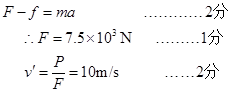 (2)当汽车以额定功率行驶,加速度a=2.25m/s2时,汽车的速度多大?