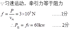 5、计算题 (8分)一辆质量为2t的汽车,其发动机的额定功率是75kw,当它在水平公路上匀速行驶时最大速度可达25m/s,设汽车阻力不变,问: