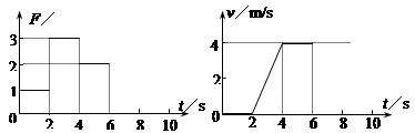 1、选择题 放在水平地面上的一物块,受到方向不变的水平推力F的作用,F的大小与时间t的关系和物块速度v与时间t的关系如图所示.取重力加速度g=10m/s2.由此两图线可以求得物块的质量m和物