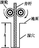 3、计算题 建筑工地有一种“深坑打夯机”。工作时,电动机带动两个紧压夯杆的滚轮匀速转动可将夯杆从深为h=6.4m的坑中提上来。当夯杆底端升至坑口时,夯杆被释放,最后夯杆在自身重力作用下,落回深坑,夯实坑底。之后,两个滚轮再次压紧,夯杆再次被提上来,如此周而复始工作。已知两个滑轮边缘的线速度v恒为4m/s,每个滚轮对夯杆的正压力F=2×104N,滚轮与夯杆间的动摩擦因素?=0.3,夯杆质量m=1×103kg,坑深h=6.4m。假定在打夯过程中坑的深度变化不大,.取g=10m/s2,求: