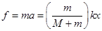 5、选择题 如图,质量为m的物体A放置在质量为M的物体B上,B与弹簧相连,它们一起在光滑水平面上做简谐振动,振动过程中A、B之间无相对运动,设弹簧的劲度系数为k,当物体离开平衡位置的位移为x时,A、B间摩擦力的大小等于