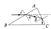 同理,当该光束从AB面上直接折射到BC面上时,将从BC面上发生全反射,其反射光束将垂直AC面射出.可见,要使光束从AC面上射出,必须使光束直接从AB面上直接射到BC面上.