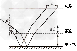 参考答案:解:设入射角为α,折射角为β,原来液面深度为h,液面深度增加△h,屏上光点移动的距离 s=2