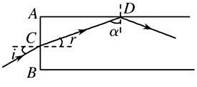 本题解析:(ⅰ)设光线在端面AB上C点(见图)的入射角为i,折射角为r,由折射定律,有