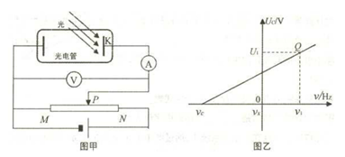 的关系,描绘出图乙中的图像,由此算出普朗克常量h,电子电量用e表示,下列说法正确的是(?)
