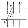 1、计算题 两条金属导轨上水平放置一根导电棒ab,处于竖直向上的匀强磁场中,如图所示。导电棒质量为1.2kg,长为1m,当棒中通入3A电流时,它可在导轨上匀速滑动,若电流增大为5A时,棒可获得2m/s2的加速度。则该装置所在处的磁感应强度的大小为多少?