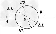 2、选择题 如图所示,电流从A点分两路通过对称的环形分路汇合于B点,在环形分路的中心O处的磁感应强