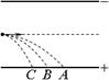 5、选择题 有三个质量相等的微粒A、B、C,从平行板电极左侧中央以相同的水平速度先后垂直于电场方向射入匀强电场中,它们落到正极板上的位置如图所示,已知它们中一个带正电、一个带负电、一个不带电,极板间匀强电场方向竖直向上,则(? )
