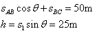 (3)若由于受到场地的限制,A点到C点的水平距离为s=50m,为确保人的安全,假如你是设计师,你认为在设计斜坡滑道时,对高度应有怎样的要求?